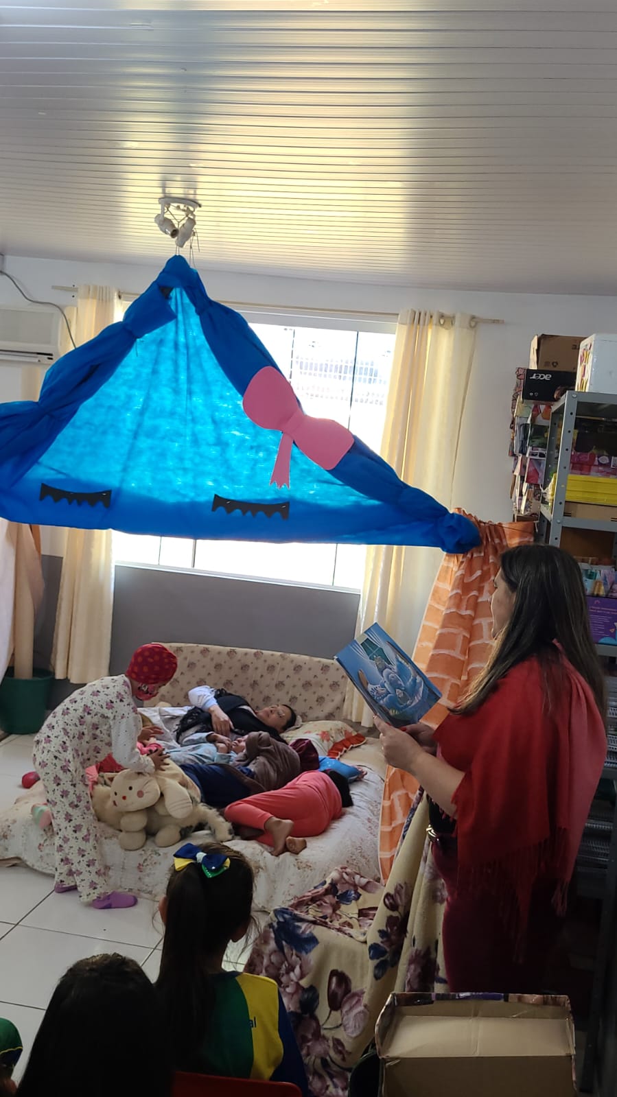As crianças embarcaram no mundo da imaginação ao recriarem as cenas contadas nas páginas do livro. Foi um dia divertido e de muito aprendizado. Sair da rotina e buscar alternativas diferentes para as crianças é uma maneira eficaz para prender a atenção dos pequenos e fazê-los desenvolver a imaginação.