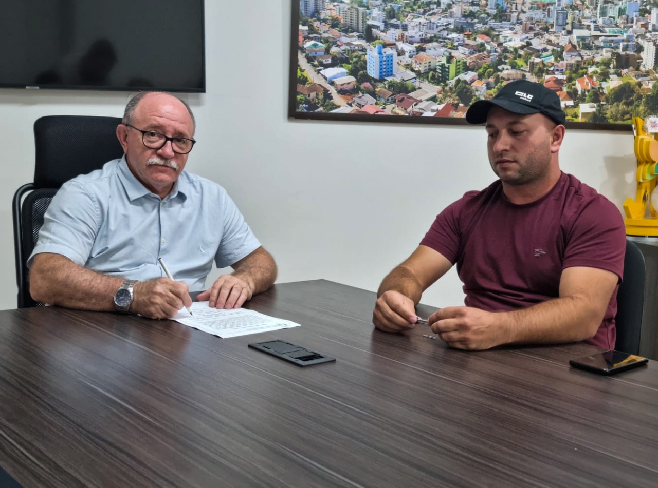 Aconteceu na tarde desta segunda-feira (12) a assinatura da ordem de serviço para construção de barracão em estrutura metálica, que será destinado como garagem de máquinas e equipamentos, no Parque de Máquinas da Secretaria de Infraestrutura e Agricultura da Prefeitura, localizado na Rua Clair Costenaro, no Município de Joaçaba/SC.