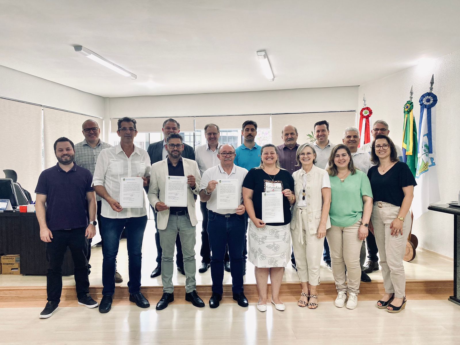 A assinatura da ordem de serviço para construção da creche no Bairro Anzolin aconteceu na manhã desta segunda-feira (5). A solenidade contou a presença do prefeito Dioclésio Ragnini, secretários municipais, vereadores, presidente do conselho da educação Janete Giacomini Dagostini, presidente da associação de moradores do bairro Anzolin Loeri José Luvison e o representante da empresa Construtora WDD LTDA, que venceu a licitação e irá executar a obra.