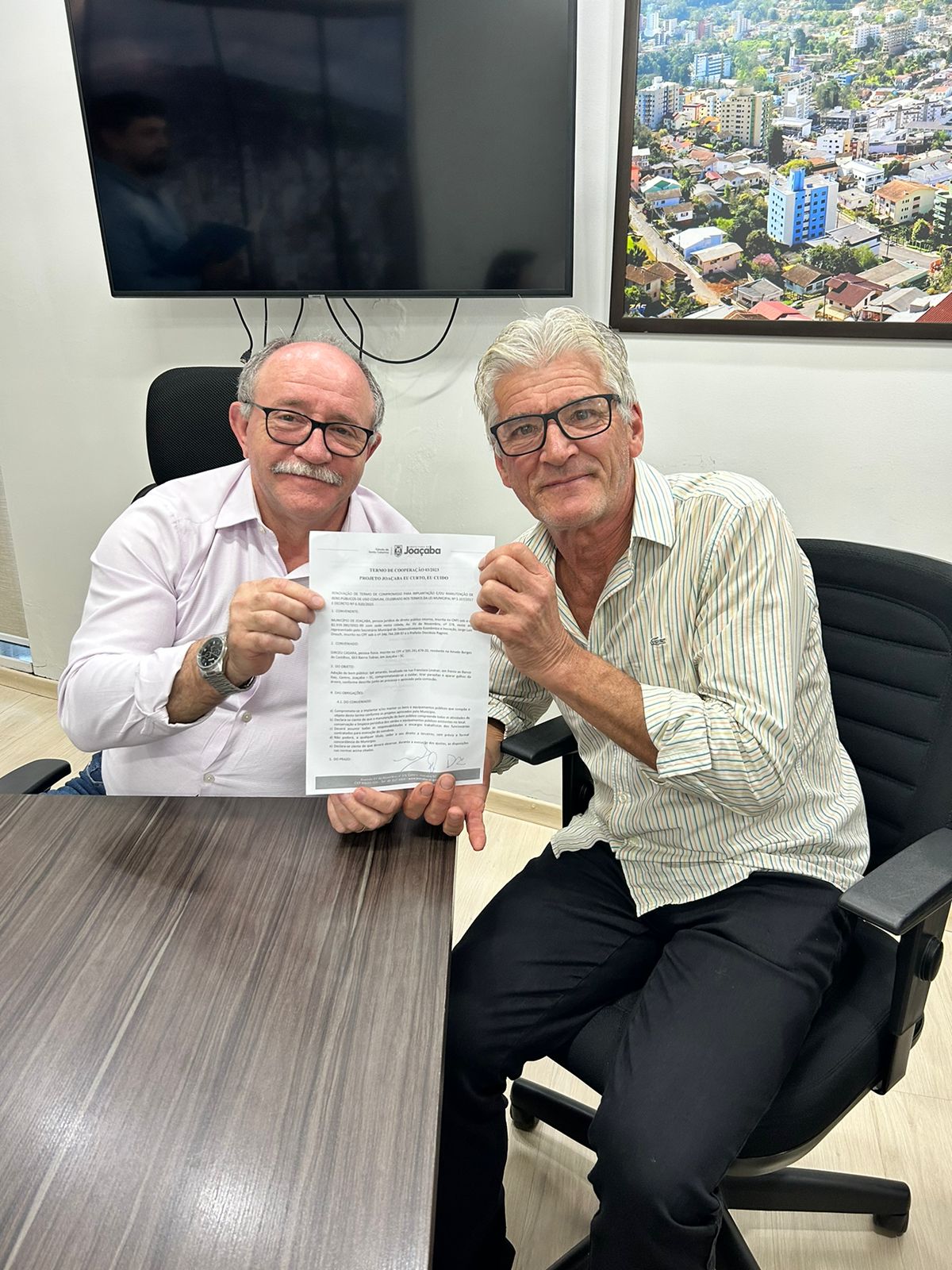A assinatura de mais seis Termos de Adoção de Espaço Público, por meio do Programa “Joaçaba, eu curto, eu cuido” aconteceu na última segunda-feira, dia 9. Na oportunidade também foi realizado o agradecimento a outras quatro empresas que adotaram nos últimos meses e já haviam assinado o Termo. Com a adoção do espaço, a empresa ou pessoa física declara qual o bem público pretendido, o que compromete-se a executar, e o tempo de adoção que pode ser de 1 a 3 anos, podendo ser prorrogado, após aprovação da comissão e divulgação de ampla concorrência do espaço.
