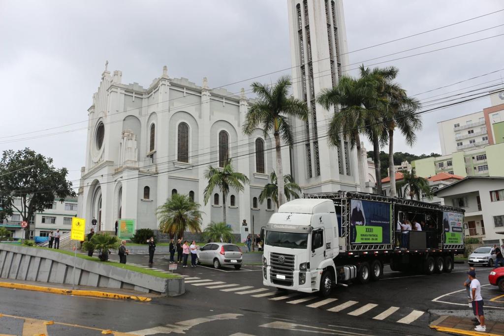 Pelo segundo ano consecutivo, em virtude da pandemia da Covid-19, a Romaria Penitencial ao Servo de Deus Frei Bruno aconteceu de maneira virtual sem a tradicional aglomeração de pessoas que lotavam as ruas da área central de Joaçaba.