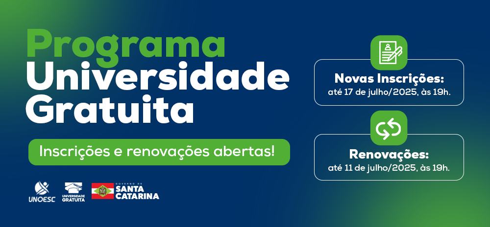 Na Unoesc, aproximadamente 10 mil estudantes já foram beneficiados com o Universidade Gratuita e o Programa de Bolsas Universitárias de Santa Catarina (UNIEDU) em 2025.